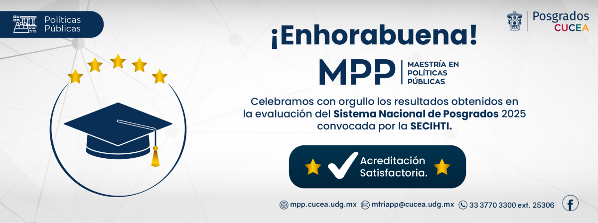 La Maestría en Políticas Públicas (MPP) es un programa profesionalizante de modalidad escolarizada que ha mantenido el reconocimiento como posgrado de calidad de manera ininterrumpida desde 2012.